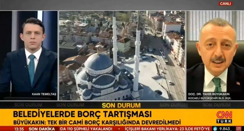 Kocaeli Büyükşehir Belediye Başkanı Doç. Dr. Tahir Büyükakın, CNN Türk’e canlı yayın konuğu oldu. Büyükakın, camilerin SGK borcu karşılığında devredilmesi gibi şeyin kesinlikle yalandan ibaret olduğunu söyledi.